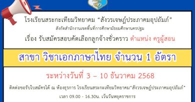 เรื่อง รับสมัครสอบคัดเลือกลูกจ้างชั่วคราว ตำแหน่ง ครูผู้สอน สาขา วิชาเอกภาษาไทย จำนวน 1 อัตรา